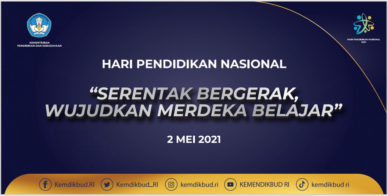 Hari Pendidikan Nasional 2021 diperingati hari Minggu, tanggal 2 Mei 2021. Peringatan kali ini dilaksanakan secara sederhana, terbatas, minimalis karena masih dalam masa pandemi Covid-19, dengan mengusung tema "SERENTAK BERGERAK, WUJUDKAN MERDEKA BELAJAR".